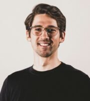 A vertical, illuminated sign displaying the letters 'TARO' in bold, serif font with integrated marquee lights is attached to a brick wall. The sign is positioned against an urban backdrop, featuring parts of buildings and a cloudy sky.
